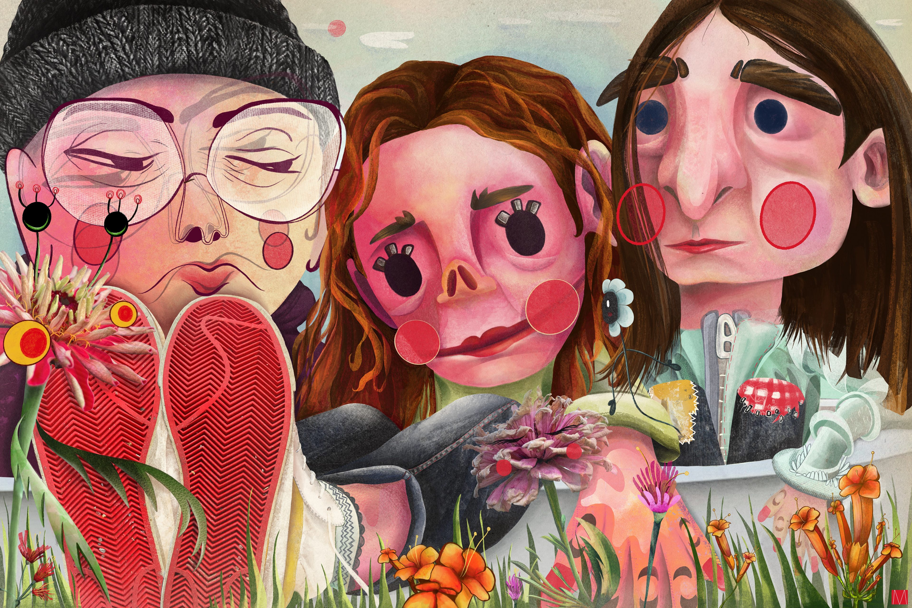 Illustration of me and my two friends in a bathtub at a family farm.