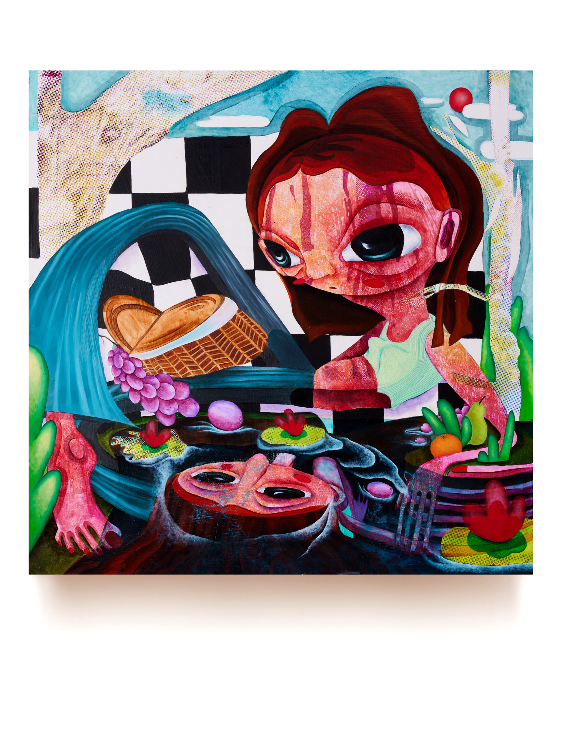 30x30 in, oil paint and screen print on panel, 2021.