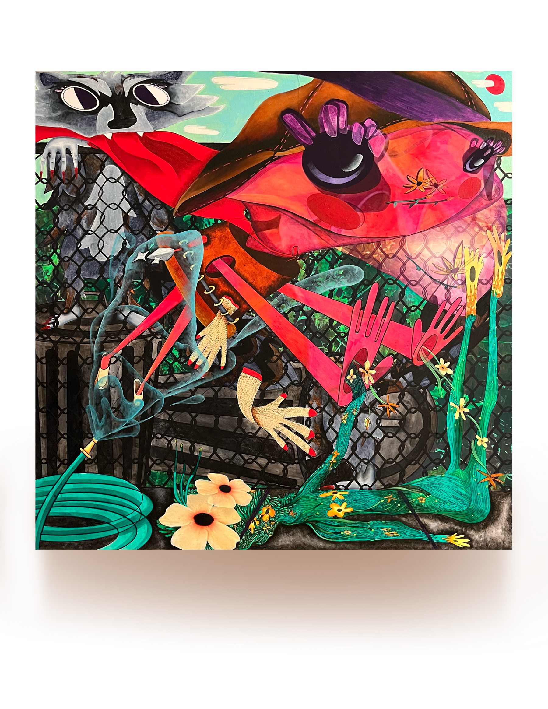 40x40 in, oil paint and colored pencil on panel, 2024.